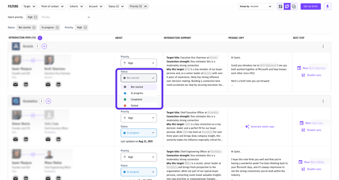 It gives you a single place to track progress, manage priorities, and move executive introductions forward without losing context.